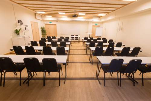 Möblering (notera att rummet är avlångt och att vi rekommenderar skol- eller styrelsesittning i detta rum)